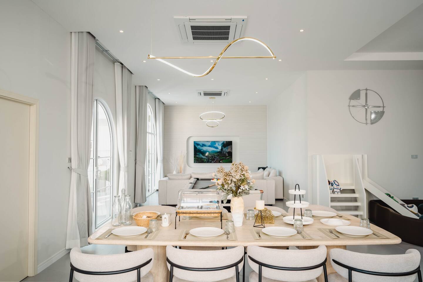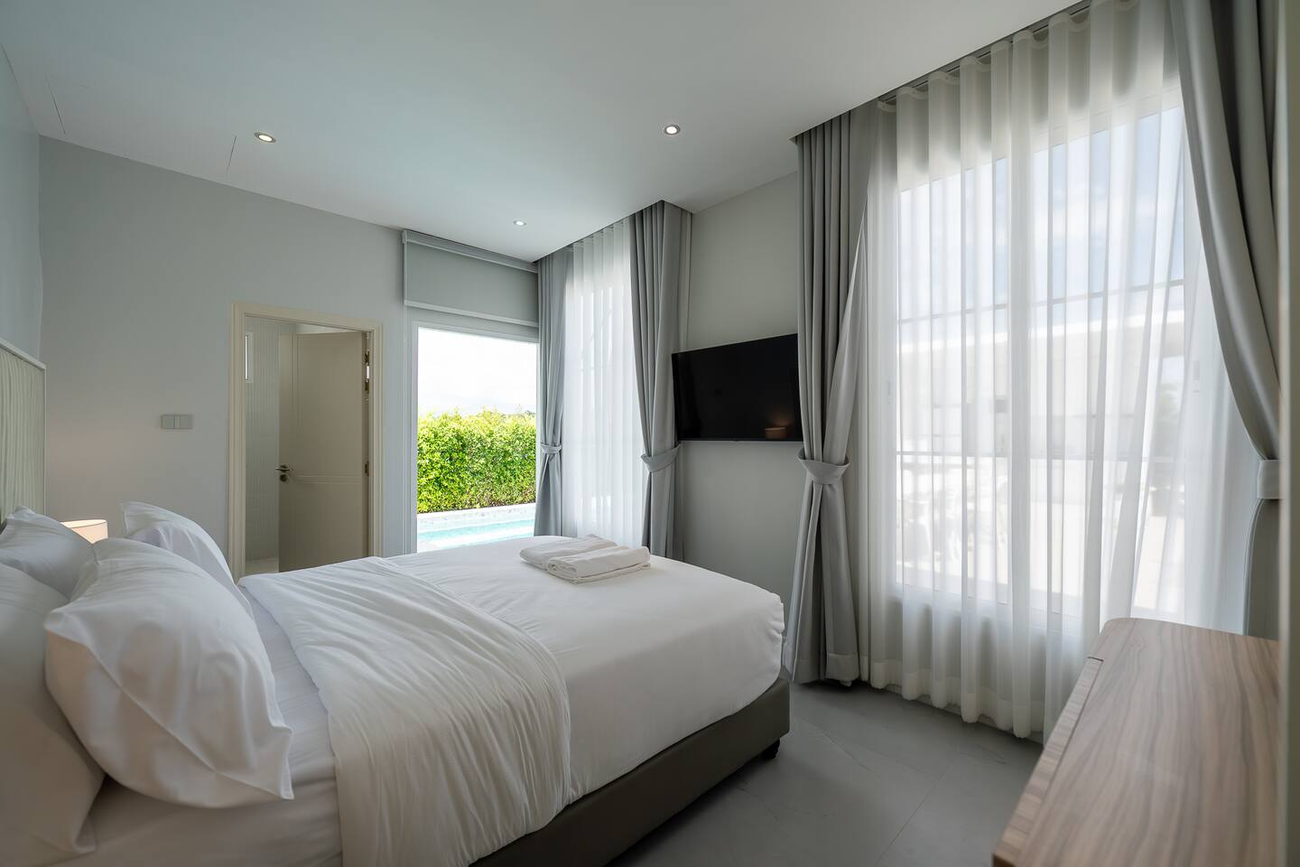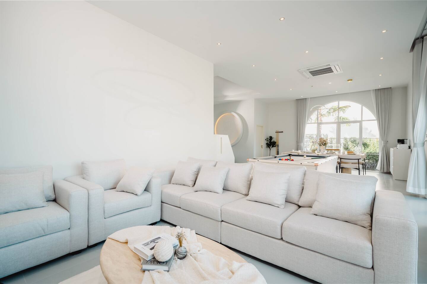 🔑 Full Property Access Includes: 🏠 Entire Villa - Complete 4-bedroom, 5-bathroom villa - All indoor living spaces, bedrooms, and common areas - Fully equipped kitchen with premium appliances and cookware 🏊♀️ Pool & Outdoor Areas - Private saltwater swimming pool and children's pool - Outdoor jacuzzi and shower facilities - BBQ area with electric grill and hot pot equipment - Pool table and outdoor seating areas - Private parking for up to 5 vehicles 📱 Technology & Entertainment - High-speed WiFi throughout the property - Smart TV with Netflix, YouTube Premium, and karaoke system - All remote controls and entertainment equipment 🛁 Premium Amenities - Fresh towels, bed linens, and bathroom essentials - Shampoo, body wash, shower caps, toothbrush sets - Hair dryer and water heater in all bathrooms - Life rings for pool safety 🚫 Restricted Areas - Technical/utility rooms and staff areas - Reception office (available for assistance only) 📞 Emergency Equipment - Emergency contact numbers posted throughout villa - First aid supplies and safety equipment